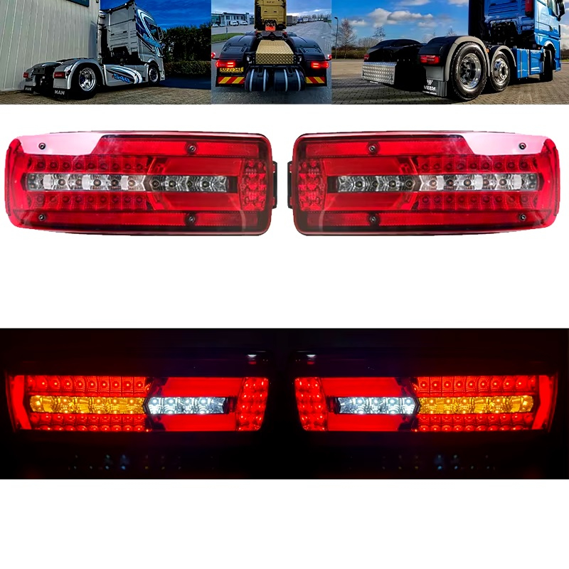 Set de stopuri LED stânga și dreapta 24V cu 8 funcții, potrivit pentru remorcă, rulotă, dubă, tir, camion Man.