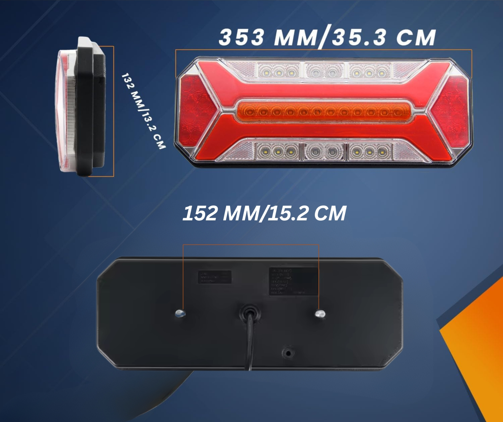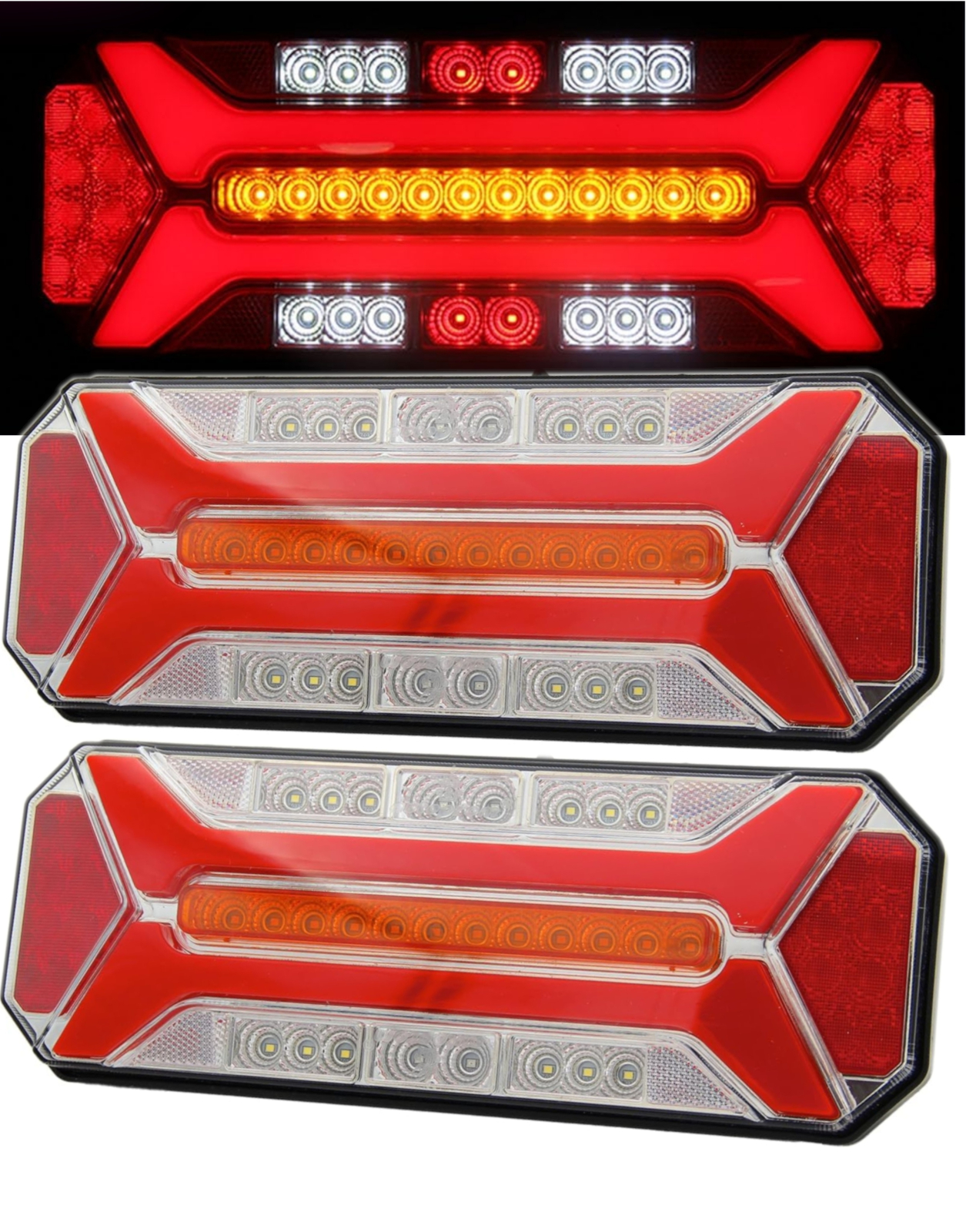 Set Lampi LED spate multifunctionala cu design modern NEON si semnalizare dinamica, conceputa pentru camioane, remorci, semiremorci si alte vehicule comerciale. Functioneaza la tensiune larga 12–24V DC si ofera vizibilitate excelenta in orice conditii, datorita tehnologiei LED de inalta performanta.