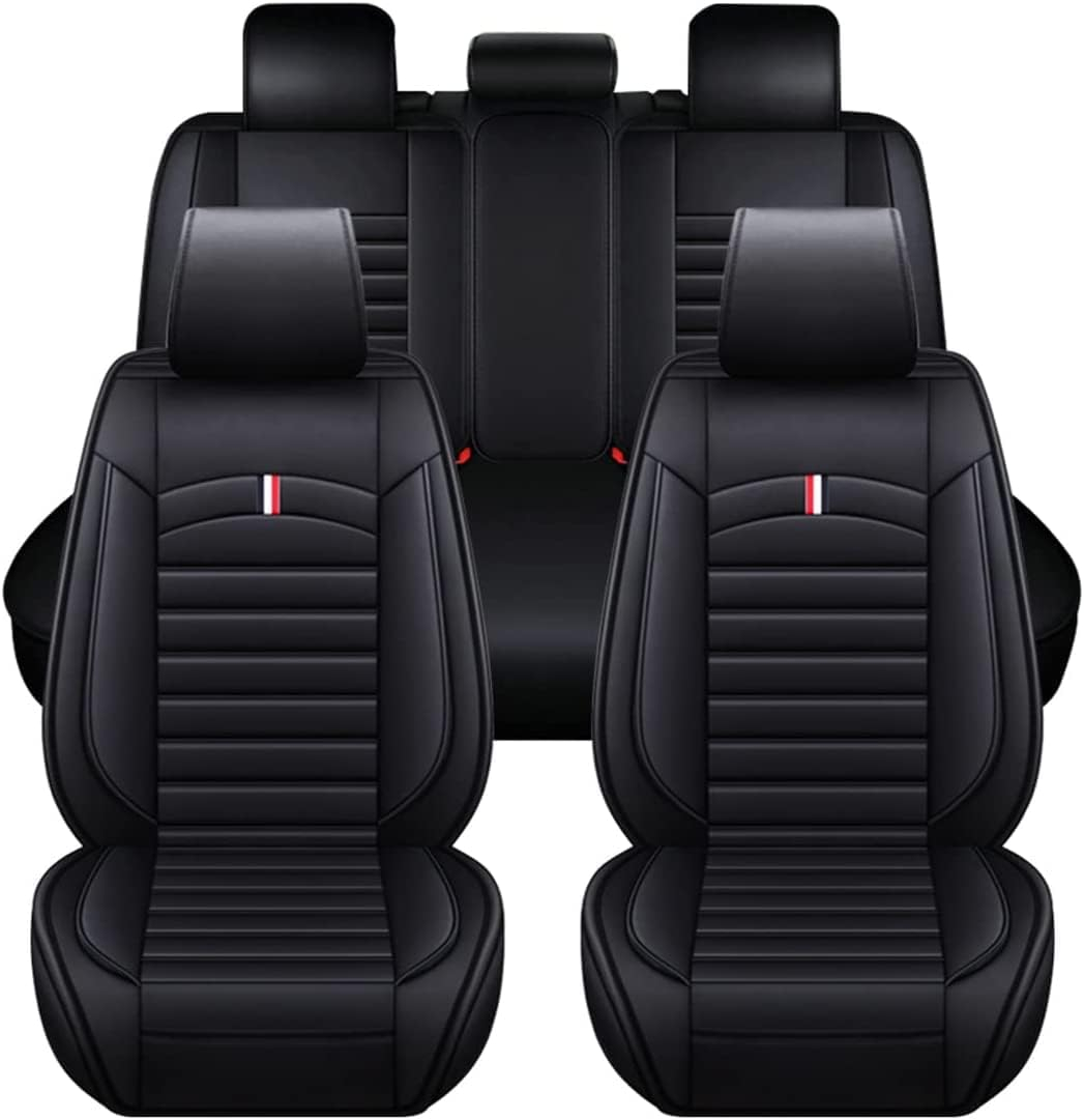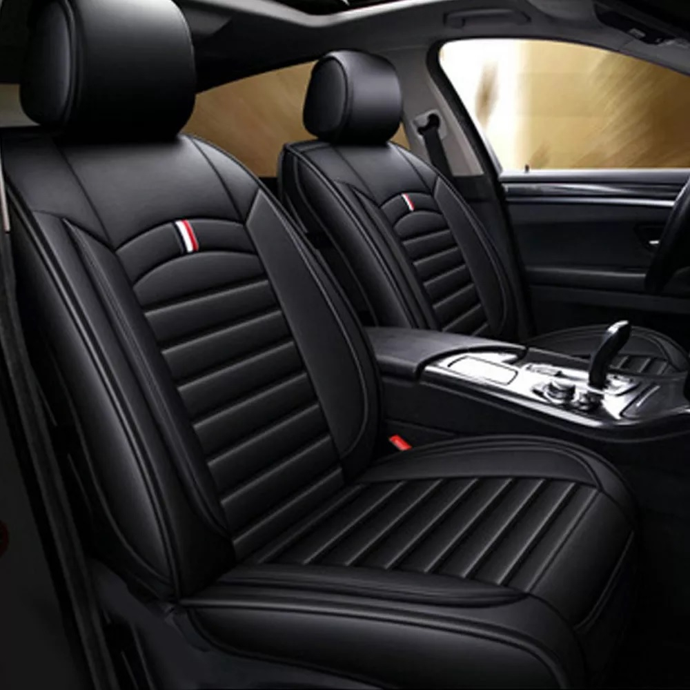 Set Huse Auto universale lux din piele ecologica cu material textil, negru pentru scaune fata si spate