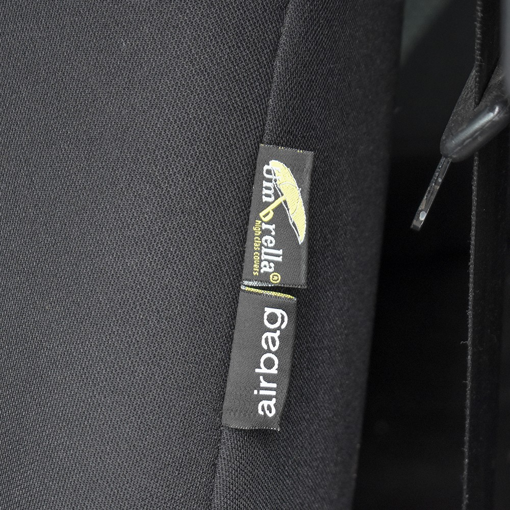 Setul de huse Umbrella este confectionat din materiale textile de inalta calitate, dublu laminate, cu burete de 5 mm grosime. Modelul este compatibil 100% cu scaunul auto original, iar designul este similar cu acesta, asigurand functionalitatea dotarilor existente: spatar bancheta spate fractionat (2+1), centuri, manere de rabatare, gauri tetiere, etc. Contine husa pentru cotiera.