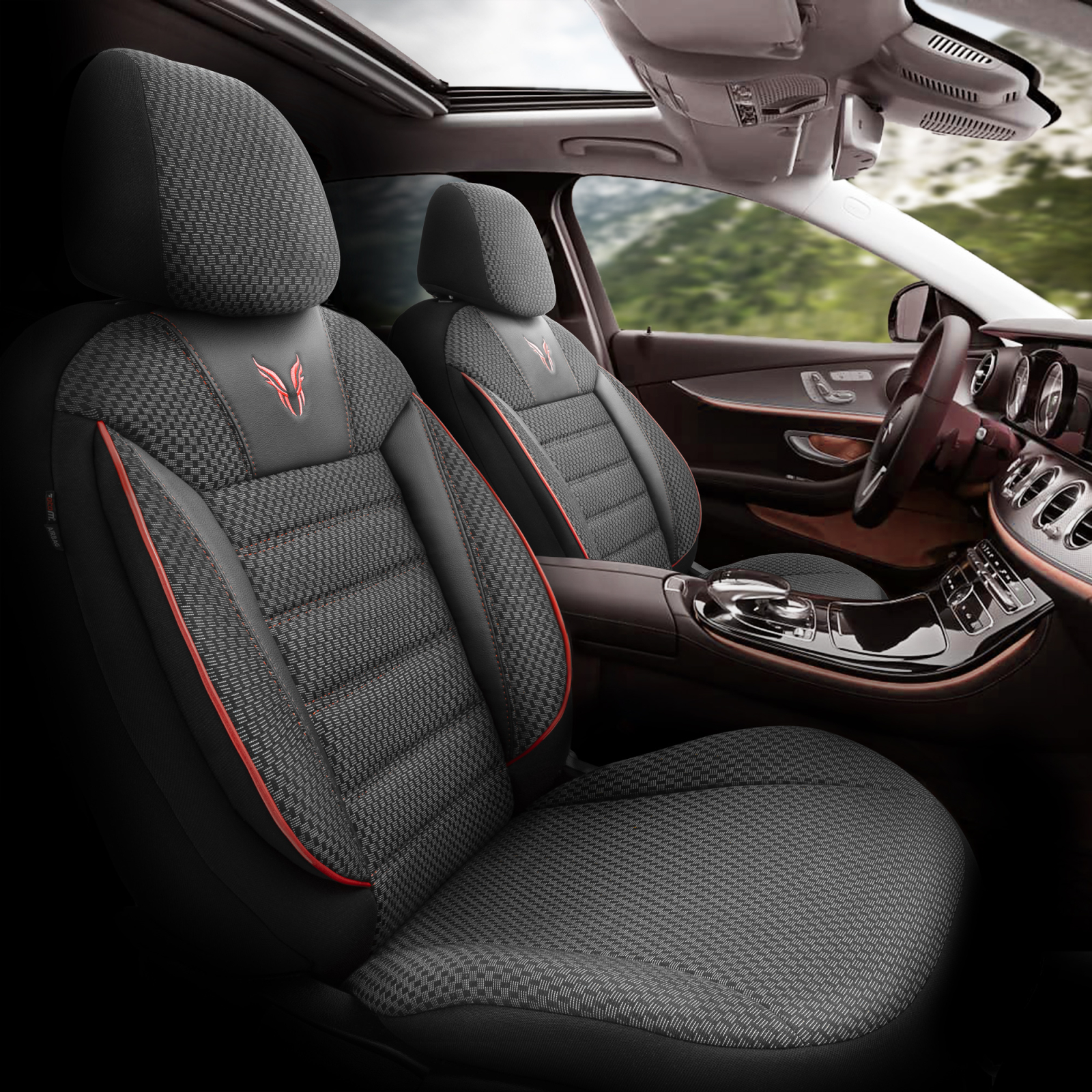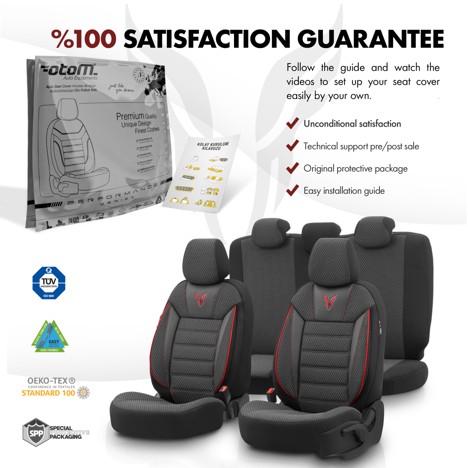 Set premium de huse pentru scaune, creat pentru confort maxim, siguranta si protectie de lunga durata. Compatibil universal cu majoritatea autoturismelor si SUV.