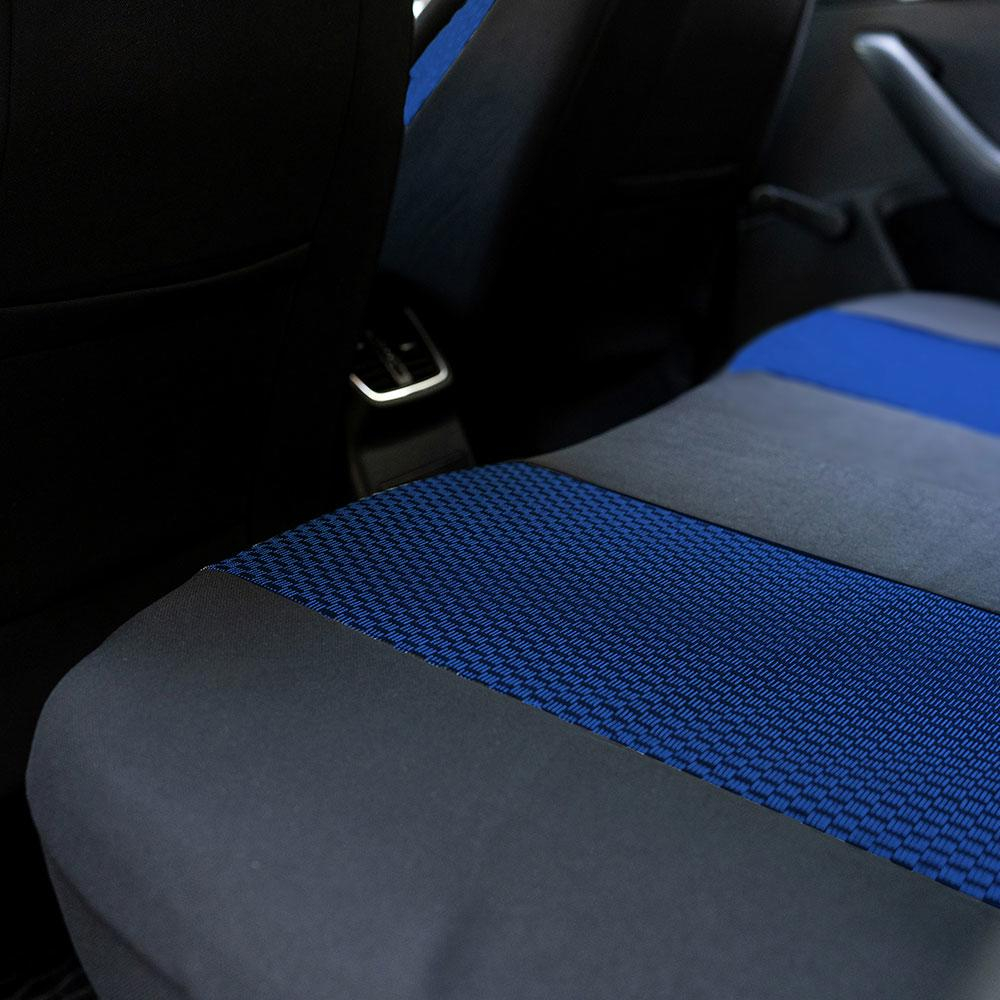 Huse din material textil dublu laminat similar cu tapiteriile originale, cu insertii de piele ecologica si ambele fete dublate cu burete (grosime 5mm);