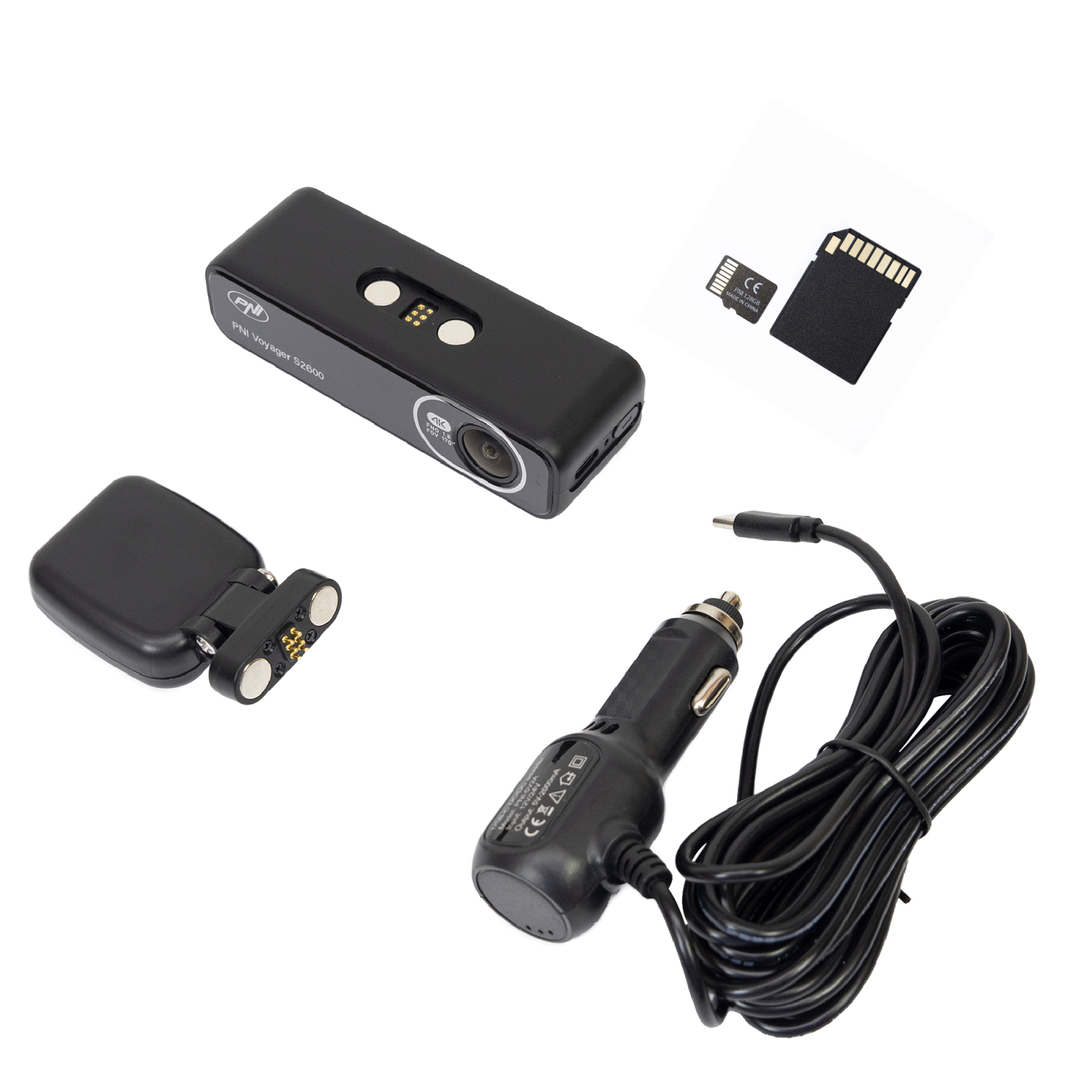 Pachet Camera auto DVR PNI Voyager S2600, WiFi, 4K Ultra HD, GPS si card de memorie microSD 128GB inclus