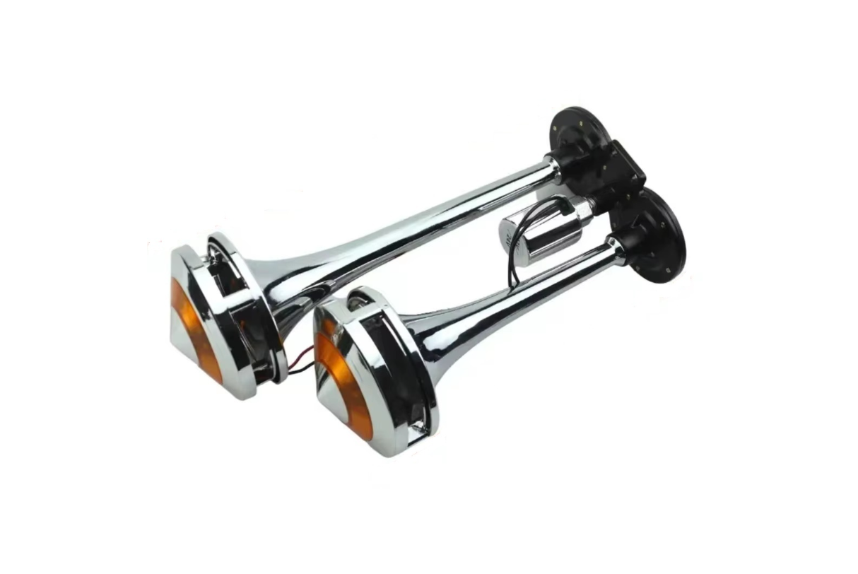 Claxon pneumatic dublu premium, proiectat pentru a oferi un sunet extrem de puternic si plin, asemanator cu sirena de tren.