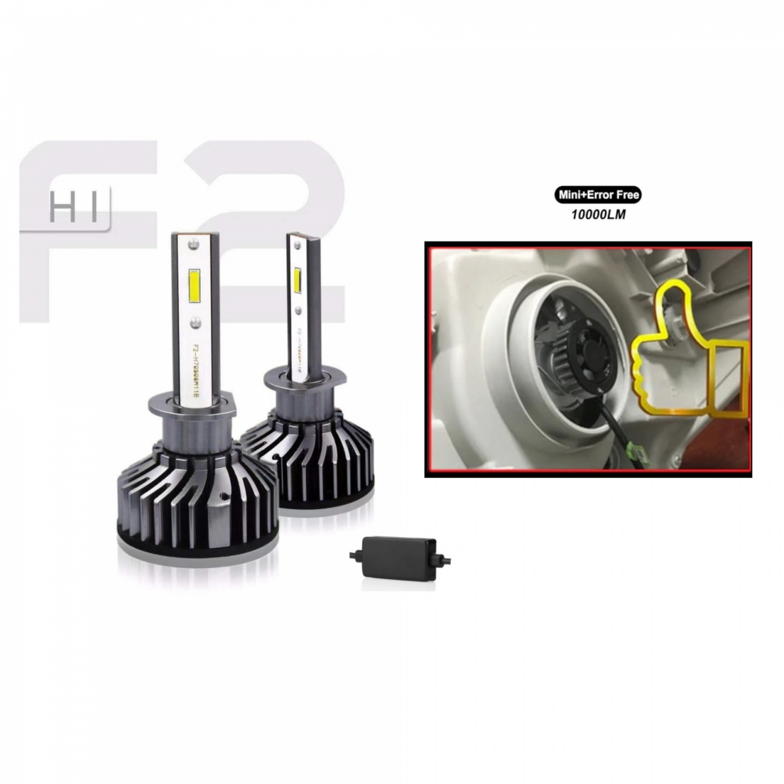 Kit Becuri Auto LED F2 LED Headlight, Lentile ZES Generatia 2, 10 000LM 72W, fara eroare de bec ars