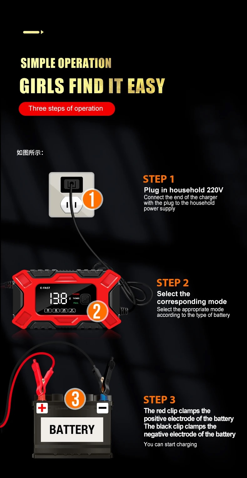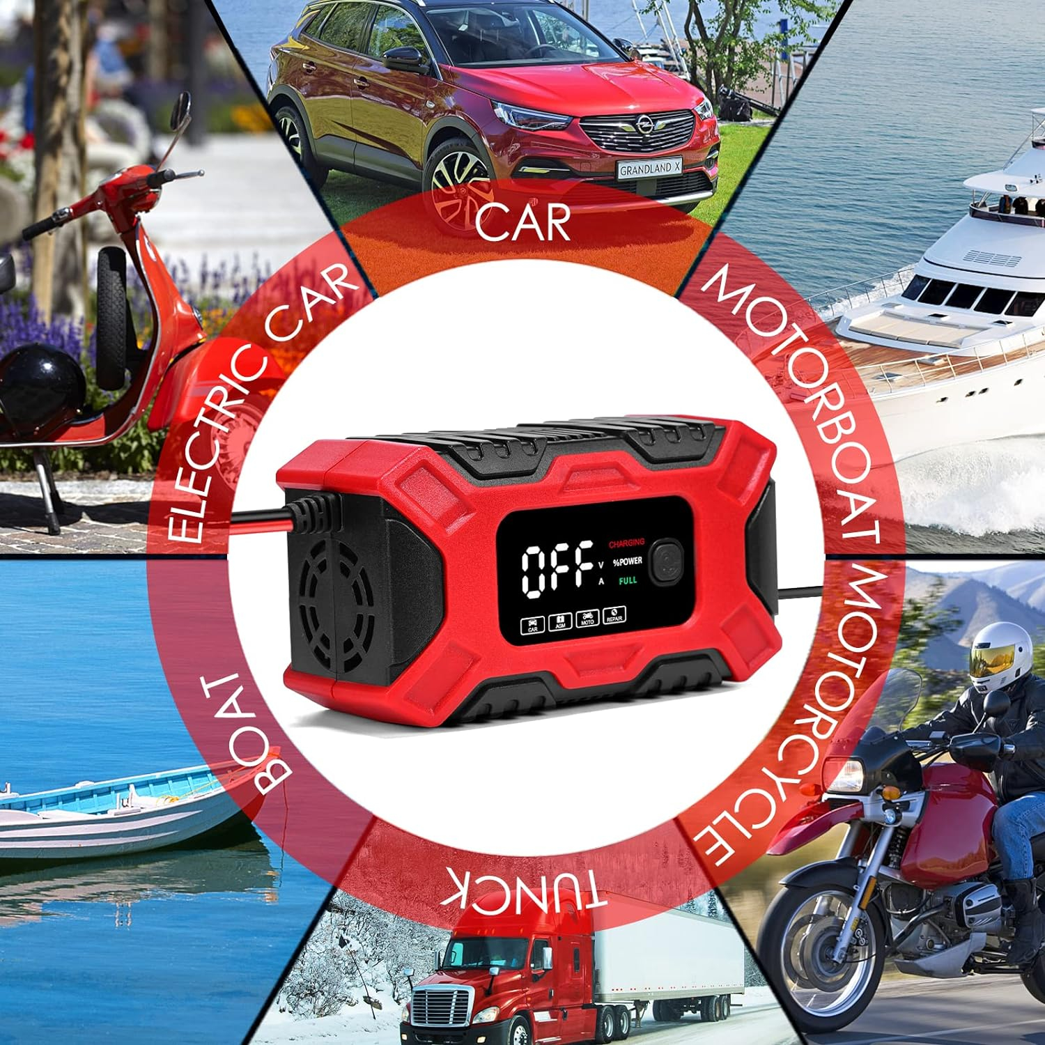 Încărcare eficientă: Încarcă bateriile de 12V până la 6 amperi, făcându-l perfect pentru mașini, camioane, motociclete și altele.
