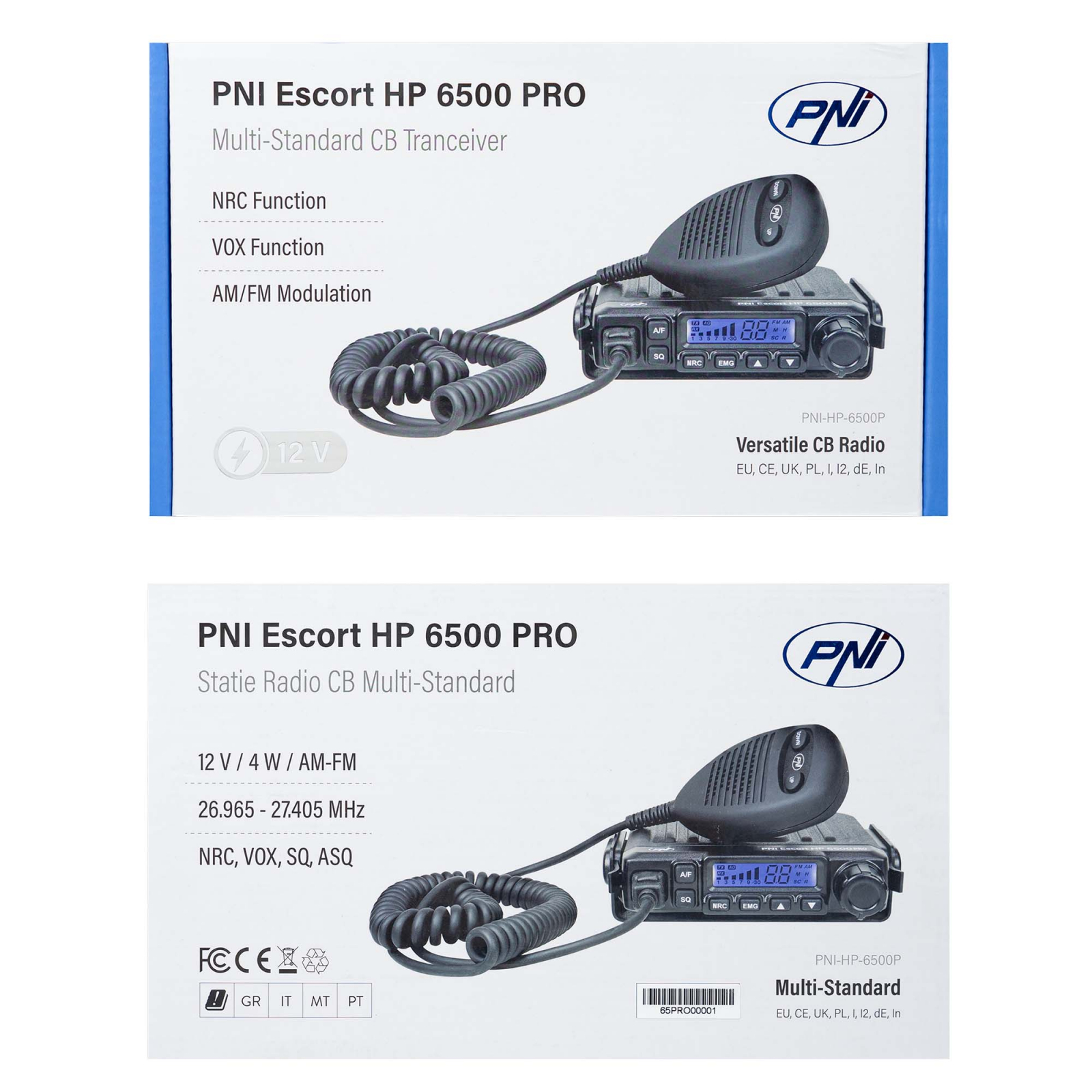 Statie radio CB PNI Escort HP 6500 PRO, multistandard, VOX, NRC, 4W, AM-FM, 12V, ASQ, RF Gain, mufa de bricheta inclusa