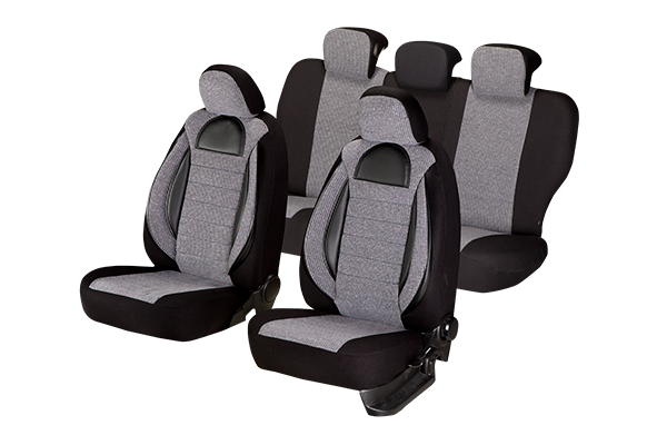 Huse din material textil dublu laminat similar cu tapiteriile originale, cu insertii de piele ecologica si ambele fete dublate cu burete (grosime 5mm);