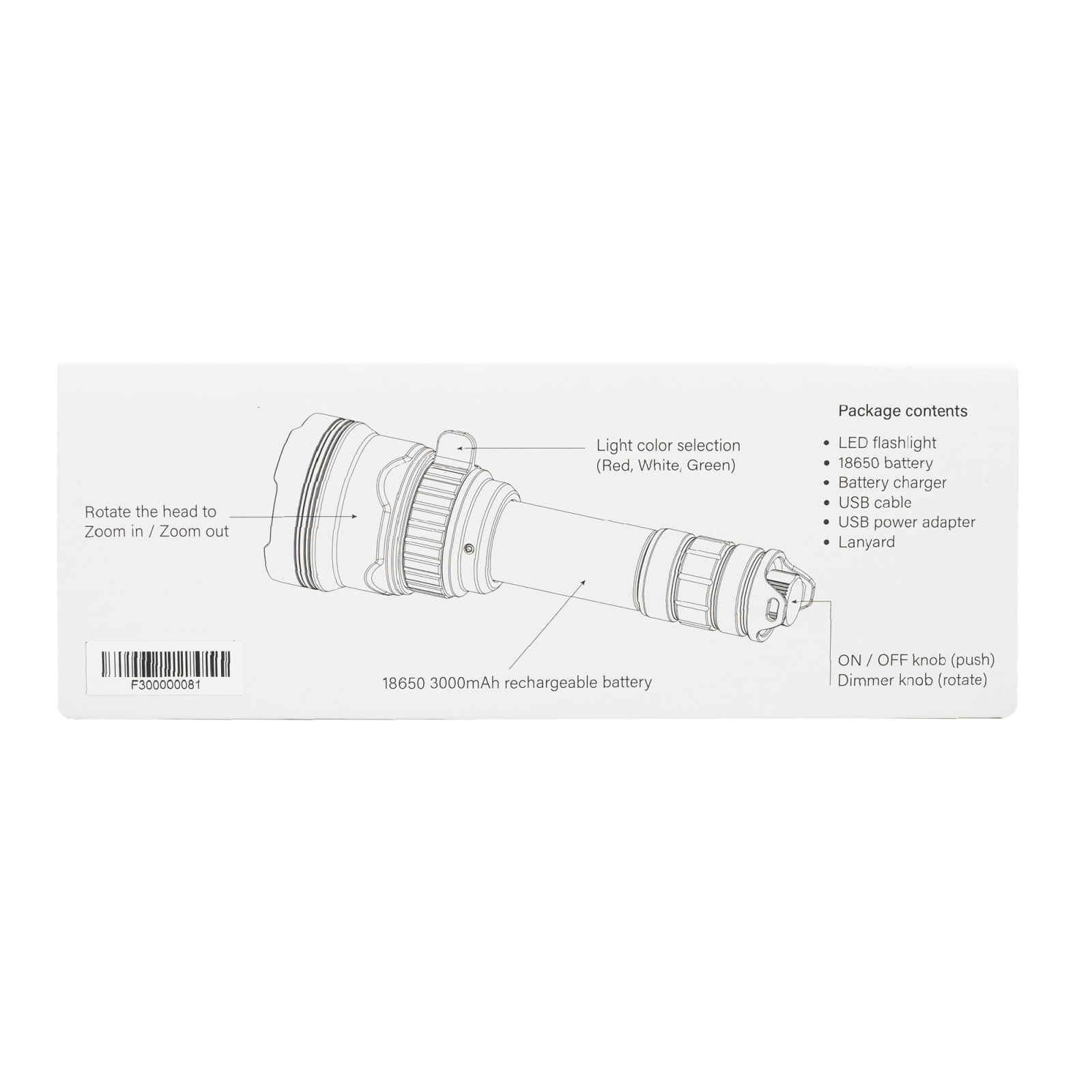 Pachet Lanterna PNI Adventure F300 cu LED in 3 culori, alb, rosu, verde, max. 10W, IPX6 cu sticky Pad Blue inclus