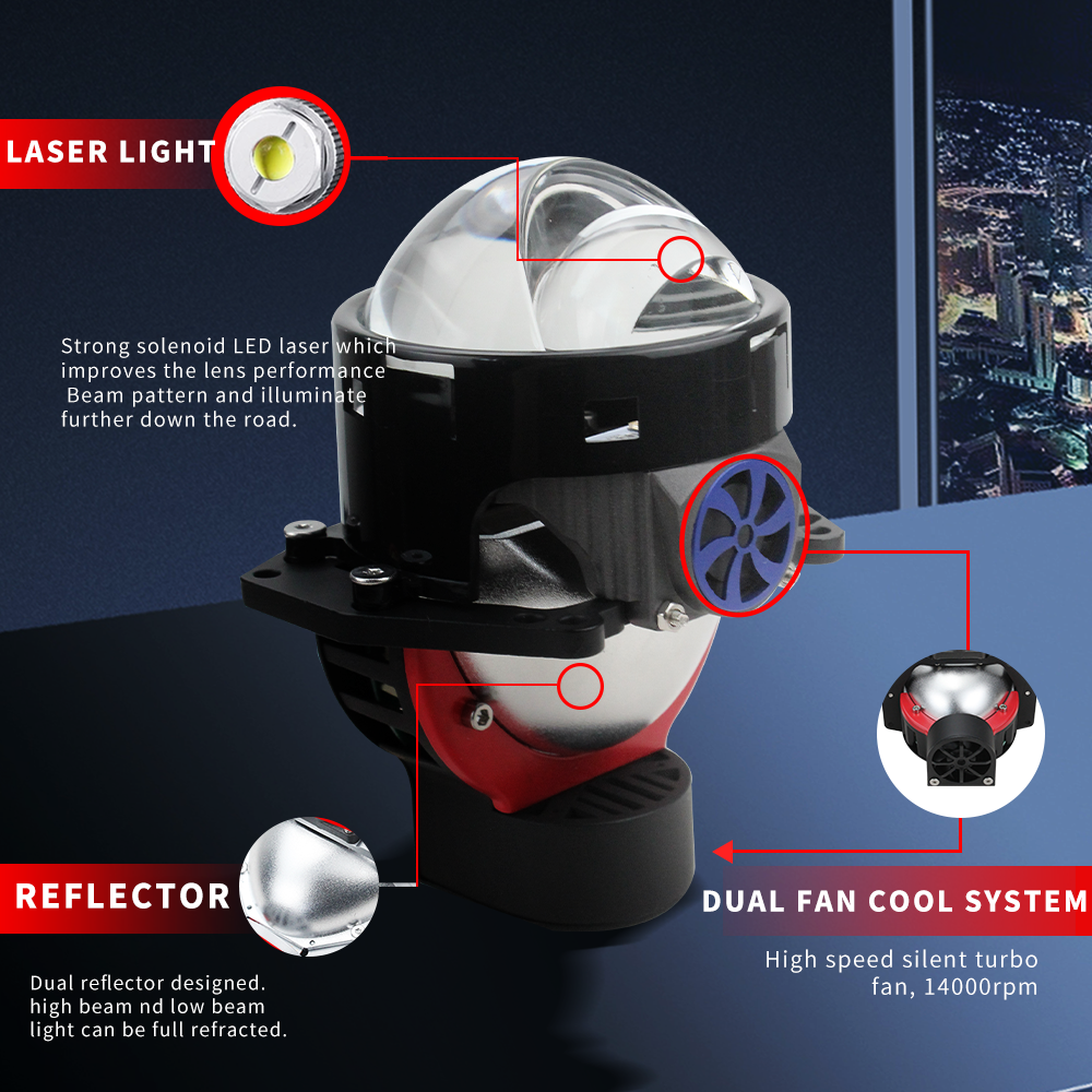 LUMINĂ LED LASER: Puternic laser LED cu solenoid care îmbunătățește performanța lentilei, modelul fasciculului și luminează mai departe pe drum.