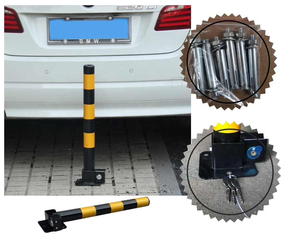 Stalp metalic rabatabil pentru delimitare spații de parcare, cu sistem de blocare – 3 chei incluse