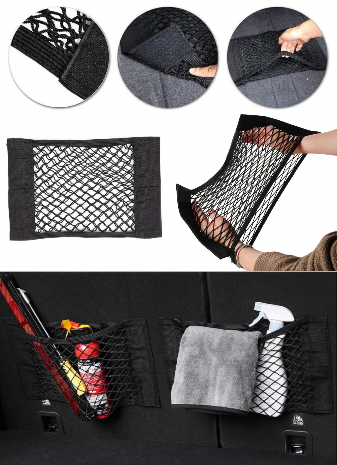 Plasa elastica ce se fixeaza cu ariciul special de mocheta portbagajului.