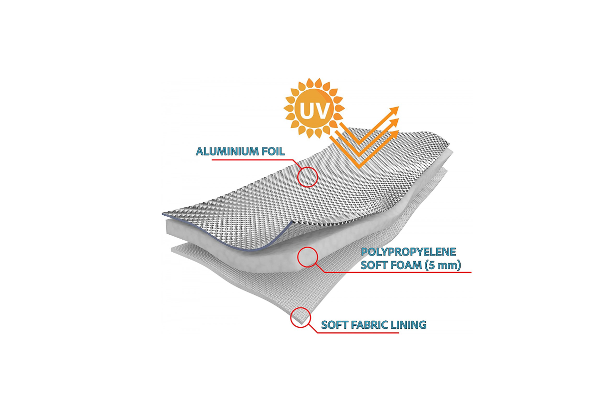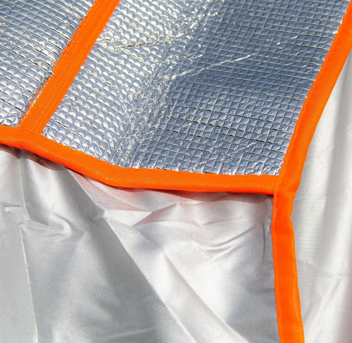 Aceasta husa auto este proiectata cu trei straturi distincte pentru a asigura eficacitatea sa. Stratul exterior este realizat din polipropilena cu un strat de aluminiu pentru impermeabilitate, stratul mijlociu permite respirabilitatea, iar stratul interior este moale pentru a preveni zgarieturile. Fixarea se face usor cu ajutorul sforilor cusute, oferind stabilitate chiar si in conditii de vant puternic. Culoarea gri eleganta completeaza designul practic.