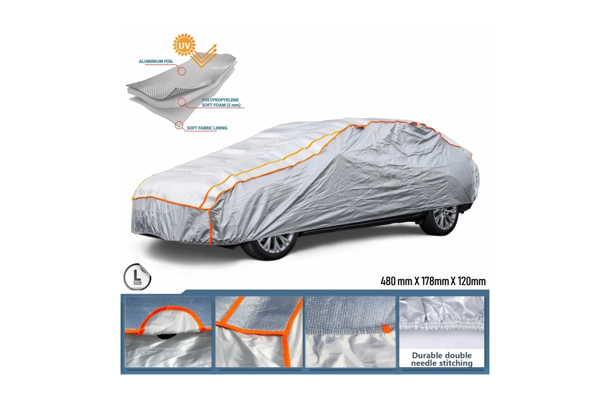 Protectia auto ANTIGRINDINA L este alegerea ideala pentru cei care doresc sa isi pastreze masina in siguranta in orice conditii meteorologice. Cu o dimensiune generoasa de 480cm x 178cm x 120cm, aceasta husa se potriveste perfect vehiculelor de dimensiuni mari, asigurand o acoperire completa. Fabricata din materiale de calitate superioara, husa ofera protectie impotriva grindinei, razelor UV, ploii si zapezii.