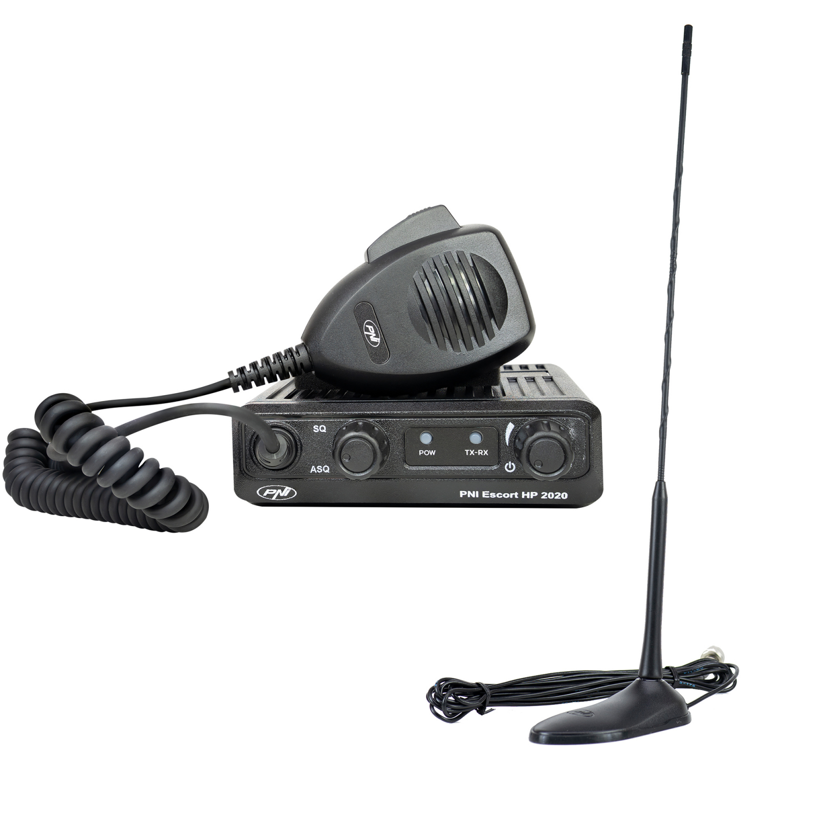 Kit Statie radio CB PNI Escort HP 2020 4W, canal 22, 12V si antena CB PNI Extra 45, 150W cu magnet