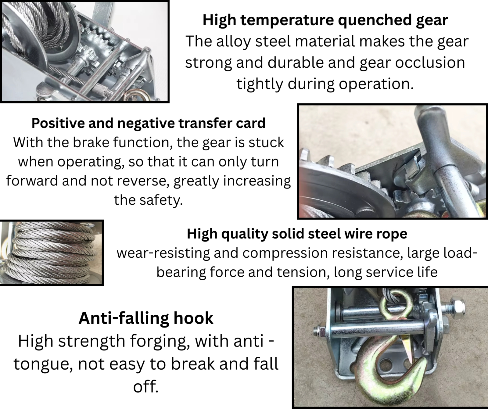 Troliu manual de mare capacitate, proiectat pentru ridicarea si tractarea sarcinilor foarte grele in aplicatii profesionale si hobby, precum remorci, barci, ATV, off-road, ateliere, constructii si agricultura. Este echipat cu frana automata cu actiune pozitiva, care mentine sarcina in orice pozitie, oferind siguranta maxima in utilizare.